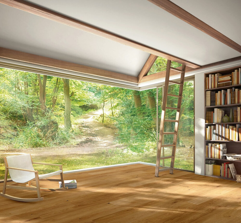 Fas/fog: Mikrofals på 4 sidor. Den omlöpande minifasen M4V bryter diskret det lagda plankornas utseende och framhäver det typiska plankutseendet.