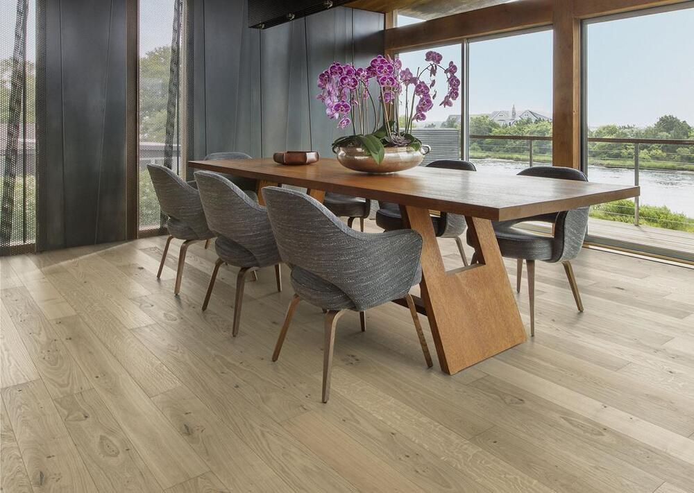 Ek Nouveau White, från Kährs är ett vackert vitpigmenterat trägolv som kombinerar modern elegans med tidlös skandinavisk minimalism. Ytan framhäver ekens naturliga ådringar och skapar en ljus och luftig atmosfär i rummet. Ett idealiskt val för den som vill ha ett stilrent och hållbart golv.