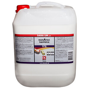 DanAtac Tæppefix 278 är ett vattenbaserat lim för fixering av mattor/mattfliser med skum-, filt- eller gummibaksida. DanAtac Tæppefix 278 håller mattan effektivt på plats så att vågor och veck undviks. Mattan ligger som limmad, men är lätt att ta bort igen utan att förstöra underlaget. DanAtac Tæppefix 278 ersätter därmed dubbelhäftande tejp eller löst liggande mattor. Används på både nya och gamla golv, på sugande och täta underlag, som t.ex. spacklad betong, spånskivor, träfiberskivor, plywood, parkett- eller trägolv, PVC- eller linoleummattor