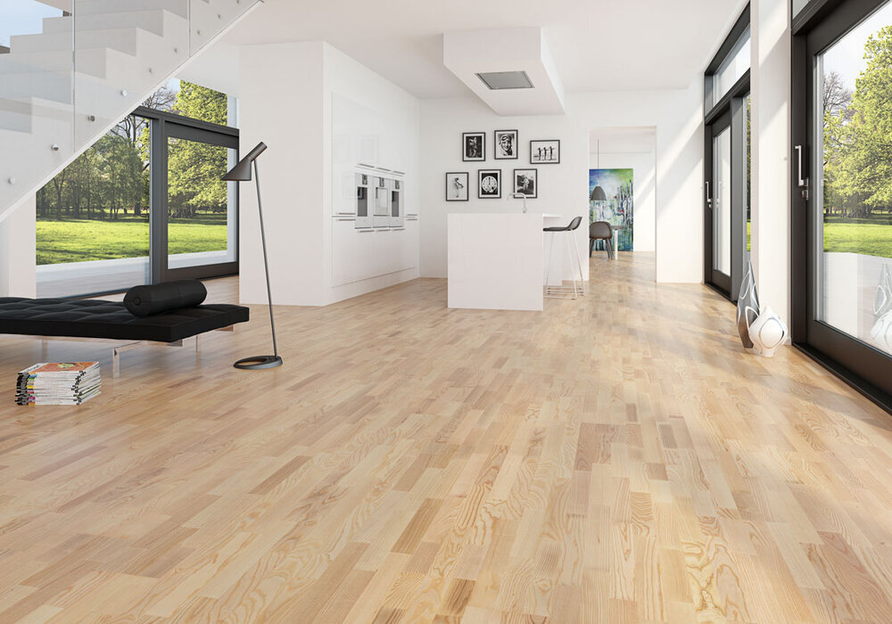 Nordisk utseende. Moland Molaloc parkettgolv passar perfekt för vår nordiska inredning med ljus, rymd och vackert trä.