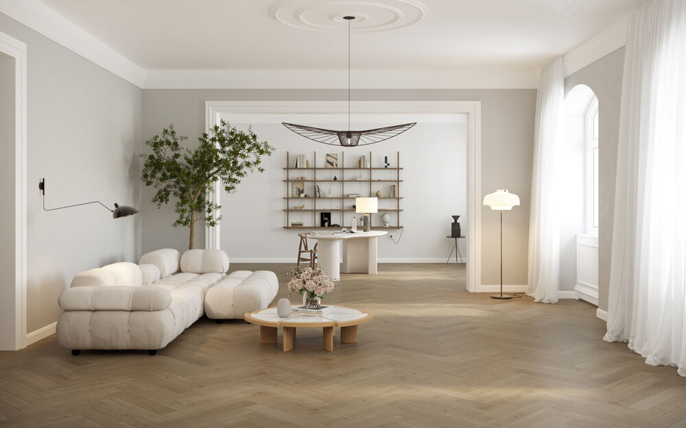 Stort läggområde: Du kan lägga Moland Bastion Vinyl i ett område upp till 125 m² utan att behöva bryta vid dörröppningar.