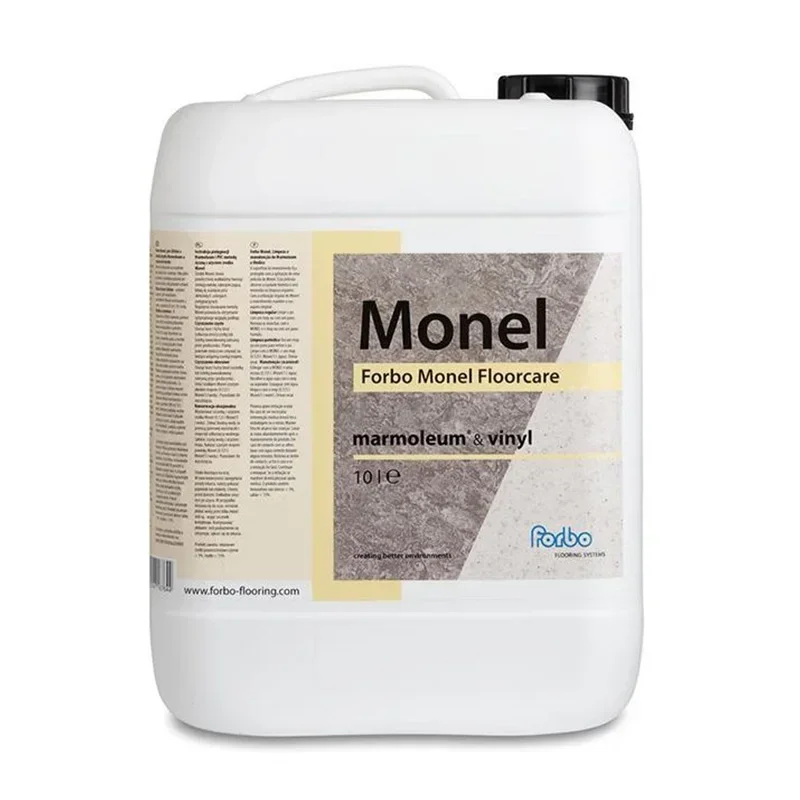 Monel är ett tvålbaserat tvättmedel som passar bordsskivor med linoleumplast, vilket ger en praktisk skyddsfilm och perfekt rengöringsprestanda för en produkt. Forbo Monel används också för vård och underhåll av linoleumgolv.