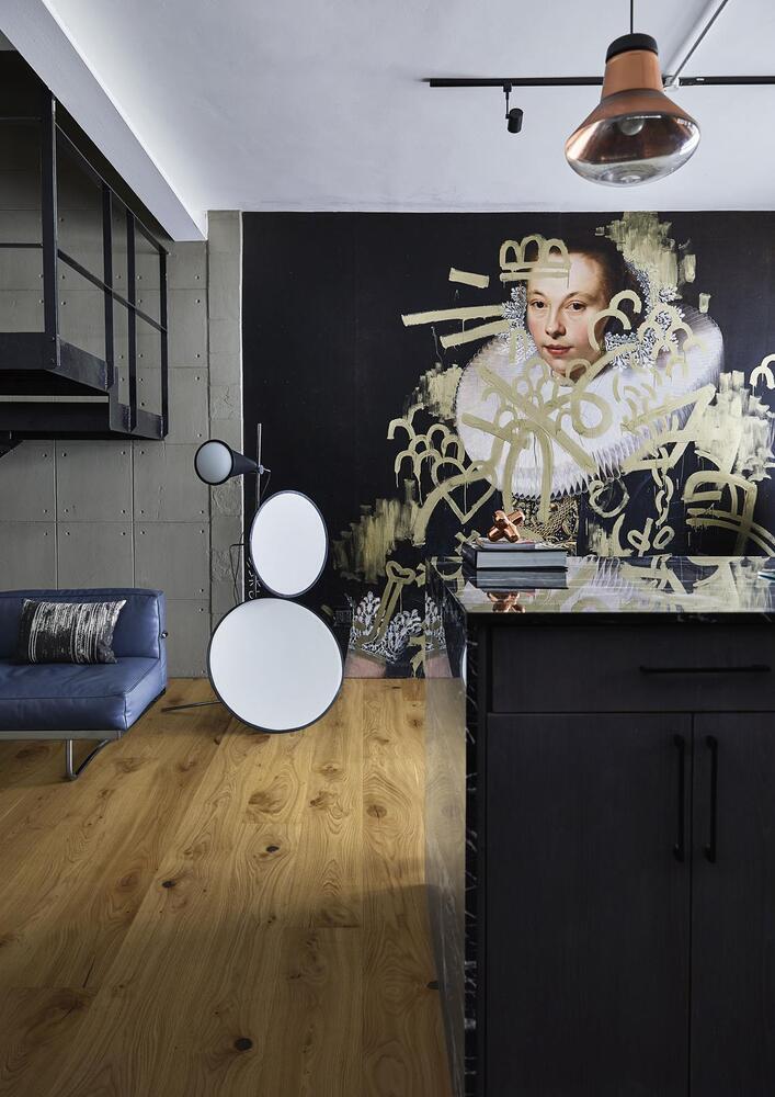 Vedbo, naturlig färg med förbättrad kontrast. Varma och gyllene toner av honung och moget råg från skördetid. Den tredimensionella strukturen framhäver kvistarna och ger golvet ett slitet utseende.