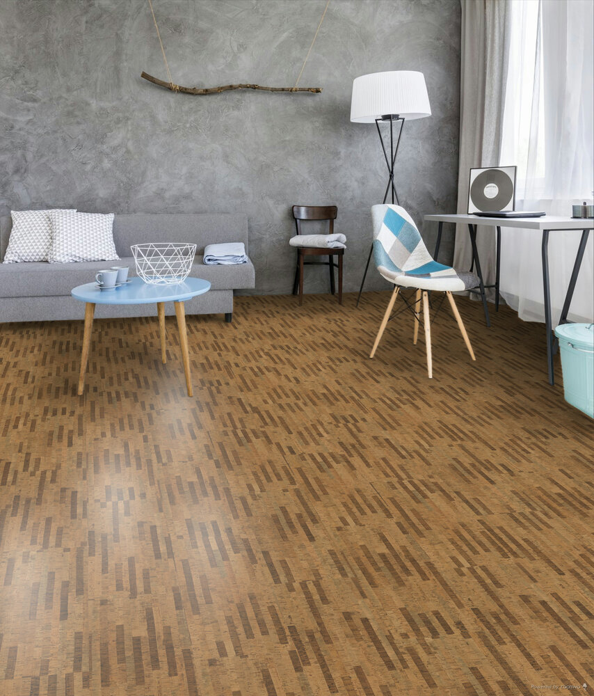 Plankorna är uppbyggda med 1,2 mm korkbaksida, 6,8 mm HDF-mellanskikt och 3 mm korkytlager. På grund av korkbaksidan behöver inget ytterligare underlag läggas under golvet, endast ångspärr där det behövs.