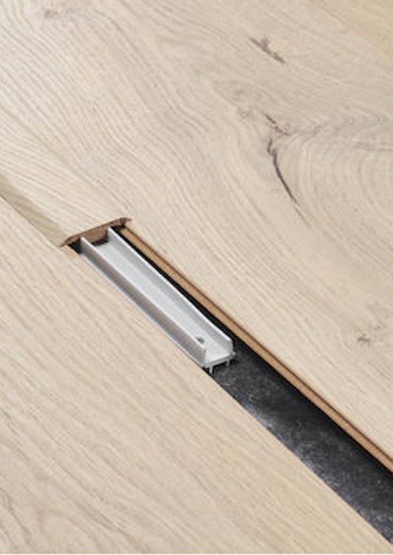En T-profil kopplar ihop två laminatgolv med samma höjd och täcker det nödvändiga mellanrummet på ett attraktivt sätt. Våra matchande golvprofiler är tillverkade av vårt laminatgolv, så de passar helt perfekt ihop. En elegant design i exakt samma struktur och färg. Basprofilen kan justeras i höjd i förhållande till golvet. Vi har en lösning på alla profilproblem!