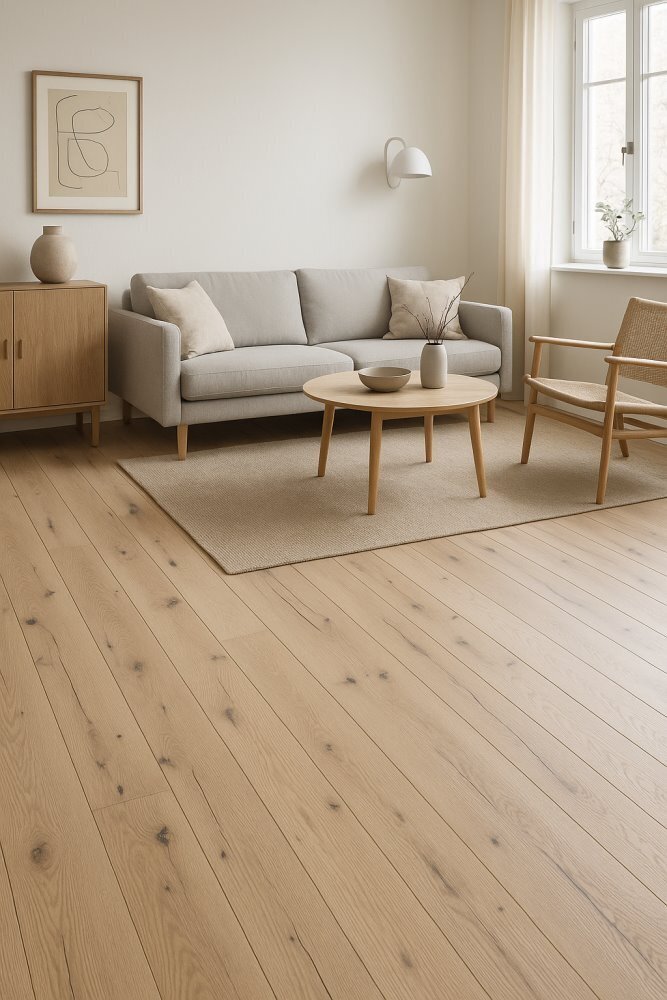 Vitoljning framhäver årsringarnas struktur och ger ett ljust, skandinaviskt inslag