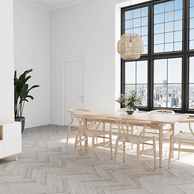 Oavsett om du vill ge ditt rum ett modernt, klassiskt eller industriellt uttryck kan Ek fiskben Woodura® hjälpa dig på vägen.